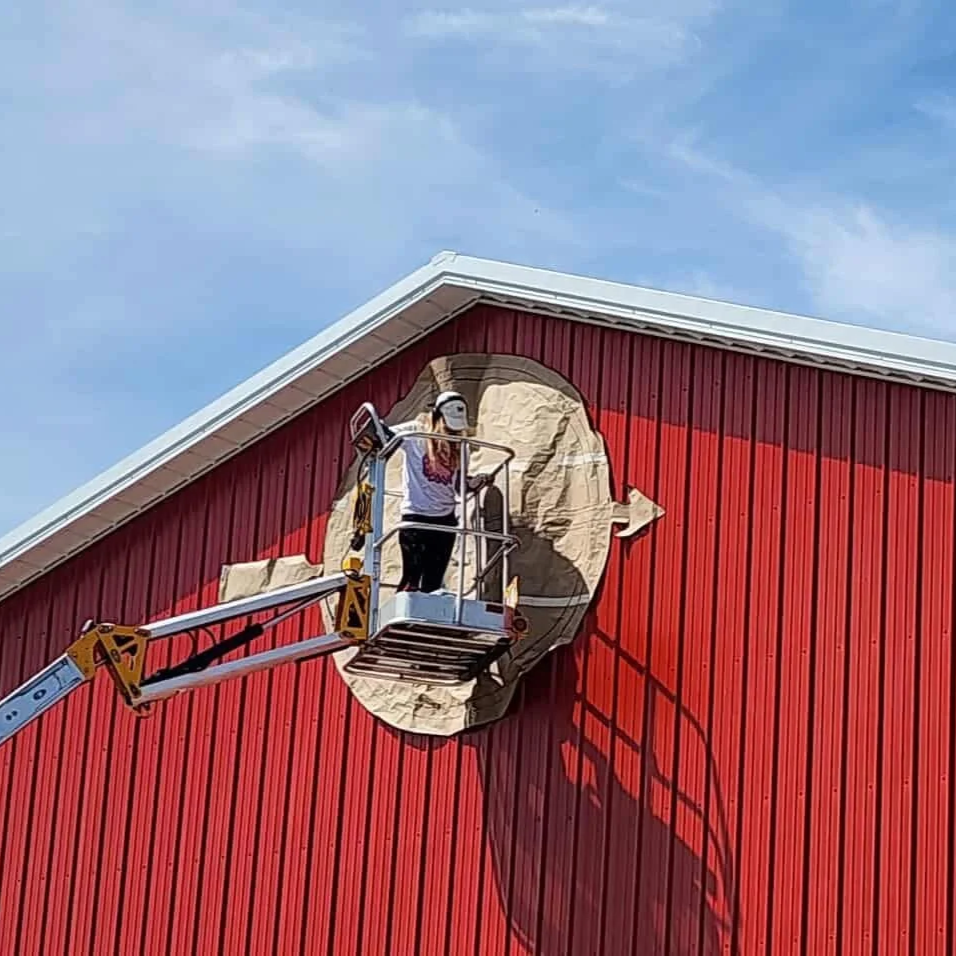 Cooper Farms partnered with America Paints America to hand-paint their logo 30-foot-tall on the side of their building. The goal wasn’t just branding—it was creating instant visibility for anyone passing by on the nearby highway.
